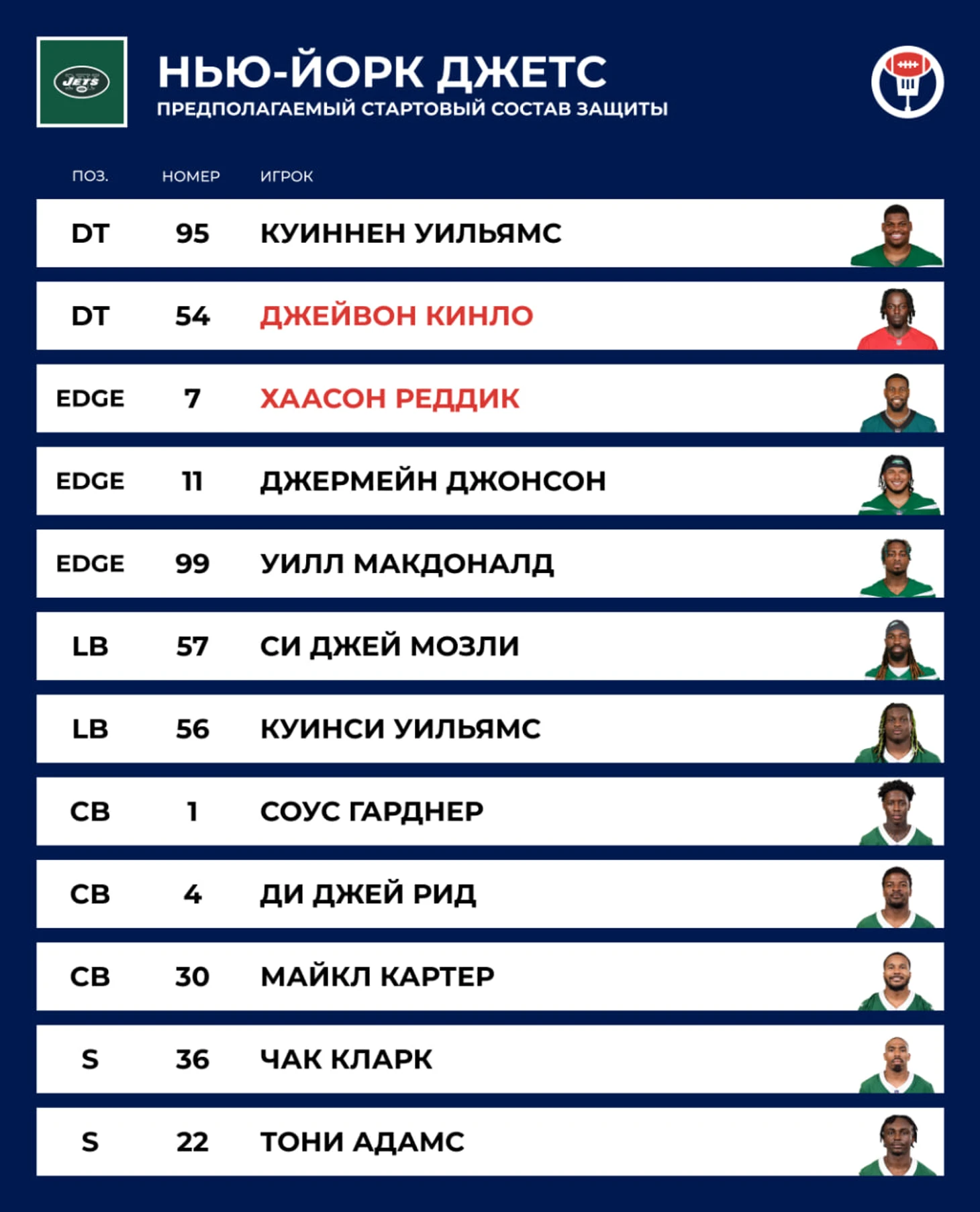 🃏 Козырь: Защита. Тщательно выпестованная линия защиты, завидное трио корнербеков, опытные лайнбекеры — у «Джетс» есть всё, чтобы доминировать по одну из сторон мяча. Всего лишь нужно не ограничивать потенциал обороны, выдавая сопернику короткое поле.