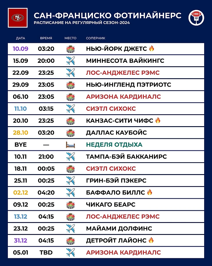 ⏪ Прошлый год: 12–5 и поражение в Супербоуле. В первые 5 недель «Фотинайнерс» выглядели несокрушимой машиной, ломающей оппонентов. Затем система зависла на 3 недели и выдавала по 17 очков в нападении, что приводило к критическим ошибкам. За неделю отдыха сисадмин всё наладил, и опять заработало доминирование. К плей-офф процессор поистрепался, стало тяжелее, но всё же до Супербоула дотянули, а там типичная встреча с хакером Махоумсом.