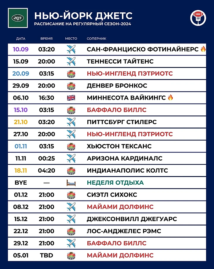 ⏪ Прошлый год: 7–10. Когда начался регулярный сезон, весь предсезонный хайп по «Джетс» продержался 4 розыгрыша, после чего Роджерса увели с поля с порванным ахиллом. После этого мы наблюдали ту же картину, что и годом ранее: крутая защита тужится изо всех сил, чтобы как-то нивелировать недостатки дохлого пасового нападенияе. В 9 матчах «Джетс» не смогли набрать и 17 очков.
