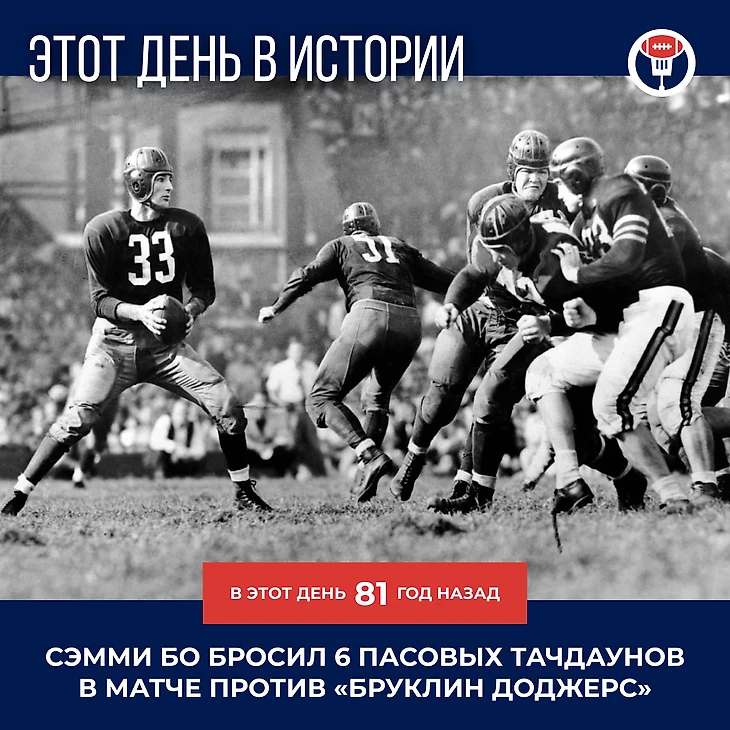 31 октября 1943 года квотербек «Вашингтон Редскинс» Сэмми Бо бросил 6 пасовых тачдаунов в матче НФЛ против «Бруклин Доджерс».