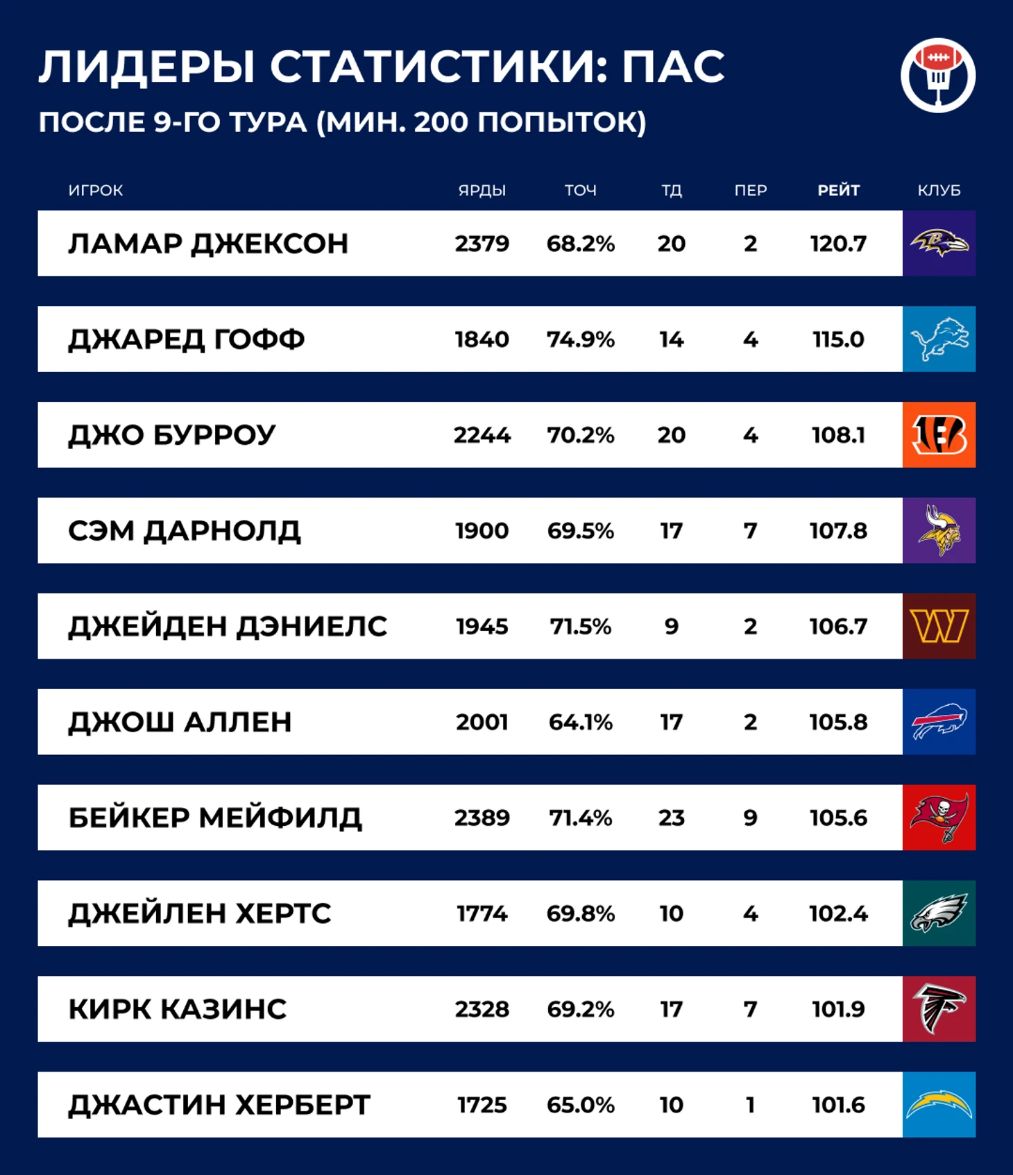 Пора хотя бы на неделю отбросить экзотические варианты и отобрать просто две самых сильных команды. Единственное поражение «Детройта» случилось во втором туре — всего в 4 очка от «Бакканирс». Конечно, и «Балтимор» и «Баффало» показывают мощную игру, но они не настолько стабильны, как эта парочка. Если обойдутся без травм, то очень сложно фантазировать о том, кому они могут проиграть в регулярке.