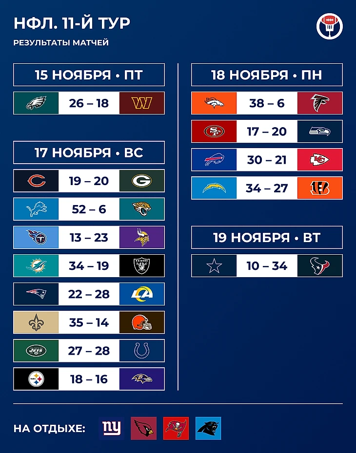 Поражение «Чифс», безнадёга «Чикаго» и театр одного Тейсома Хилла. Что мы увидели в 11-м туре НФЛ