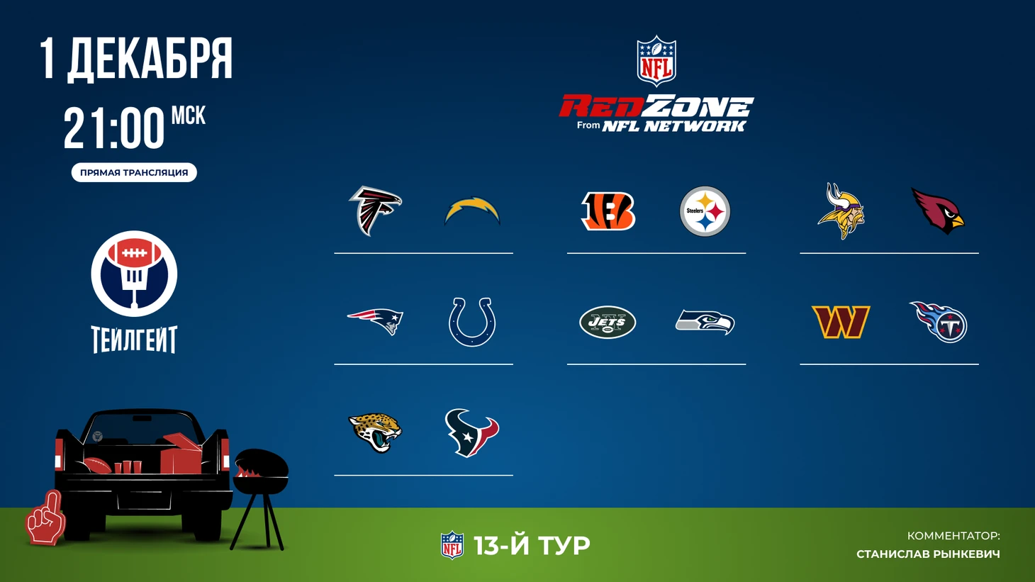 Традиционный Red Zone в две волны. Первую прокомментирует Станислав Рынкевич, вторую — Леонид Анциферов.