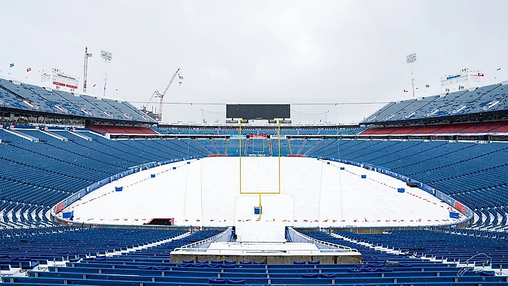 Да, Баффало атакует снежная буря. За сутки до матча весь «Орчард Парк» был укрыт белым одеялом, и администрация стадиона призвала армию добровольцев с лопатами на расчистку арены. Снегопад ожидается и перед матчем и прямо во время него. Температура воздуха –1…–3 Цельсия. Ветер 7–9 м/с, порывы до 15 м/с.