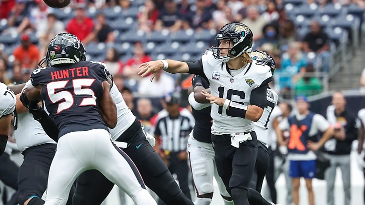 Дивизионное противостояние на Юге АФК, где теперь даже лидер не выглядит убедительно. У «Тексанс» 4 поражения в последних 6 матчах, а у Си Джея Страуда за этот период 4 тачдауна при 5 перехватах и 23 сэках. А ведь у «Джексонвилла» есть кому добираться до квотербека — у Трейвона Уокера и Джоша Хайнс-Аллена на двоих 12.5 сэка.