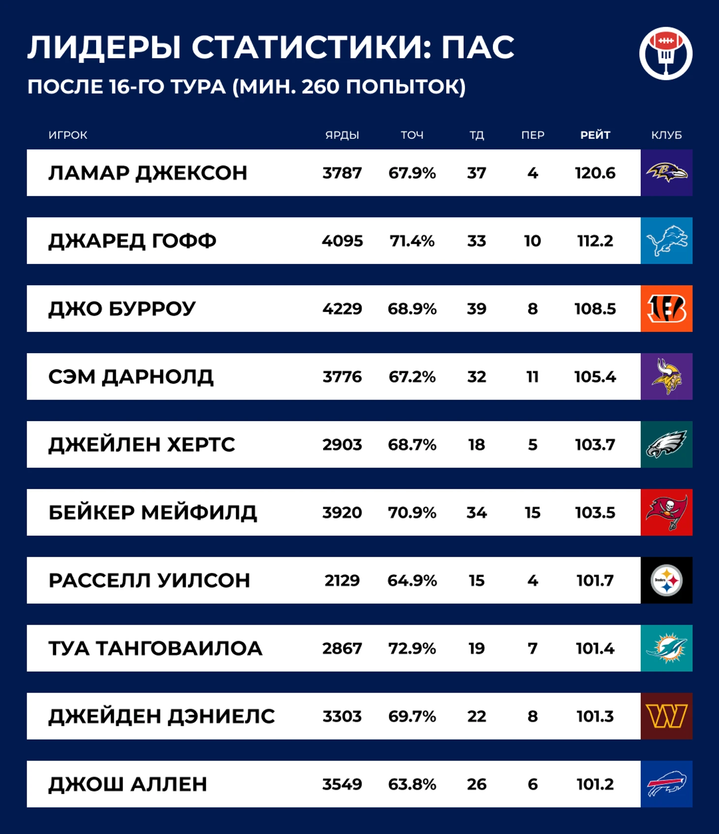 Буквально неделю назад всё у «Бакканирс» было прекрасно — игра клеилась, а квотербек основных конкурентов бросил 1 тачдаун при 9 перехватах в последних 5 матчах. Всё резко поменялось после 16-го тура.