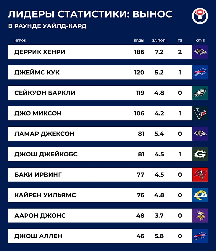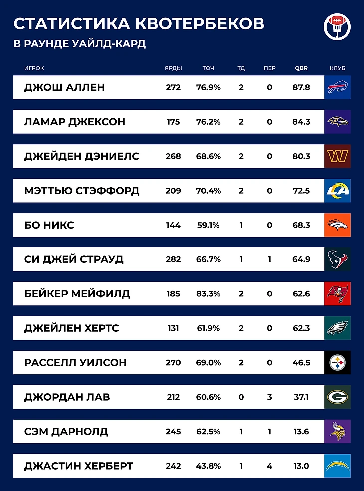 Хладнокровный Дэниелс, 4 перехвата у Херберта и сплошной вынос от «Биллс». Что мы увидели в первом раунде плей-офф НФЛ