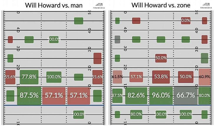 3. Закрыть Смита, да это освободит Эгбуку, но именно Смит даёт Огайо самые длинные приёмы. Техас и Мичиган играли зонную оборону, менее четверти было прикрытием по игроку. Нотр Дам напротив играет персонально 64% времени. Это может стать ключевым моментом.