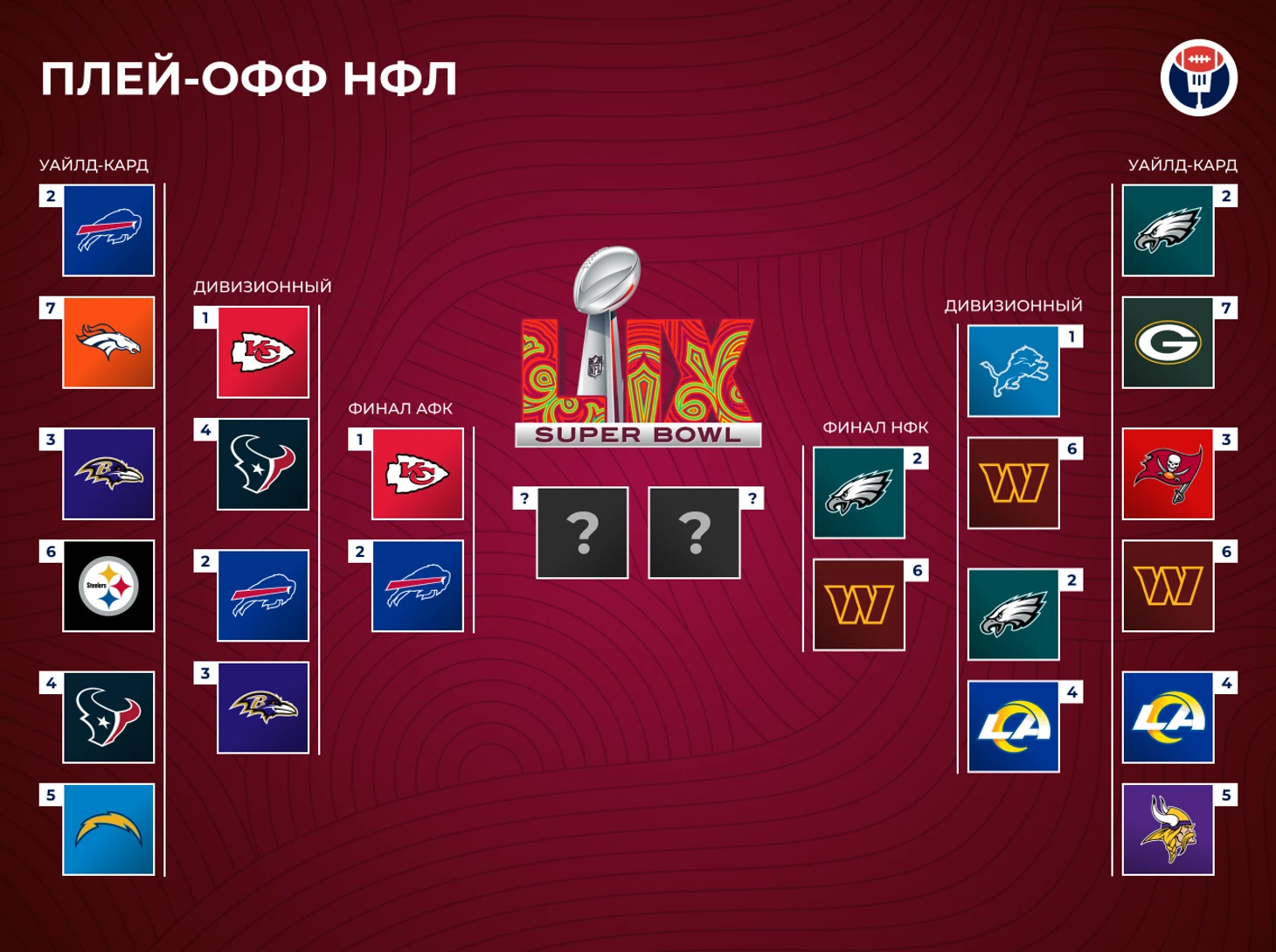 Ребят, я тоже фантазирую о финале «Баффало» — «Вашингтон». Я согласен и про «доколе?», и про то, что Аллен заслужил, и что история про столичную золушку пробирает крепче, чем всенародная любовь к Сейкуону Баркли. Но НФЛ — жестокая лига. Поэтому лучше сразу готовиться вот к такому раскладу. Чтобы потом не идти на Супербоул-пати с кислой физиономией.