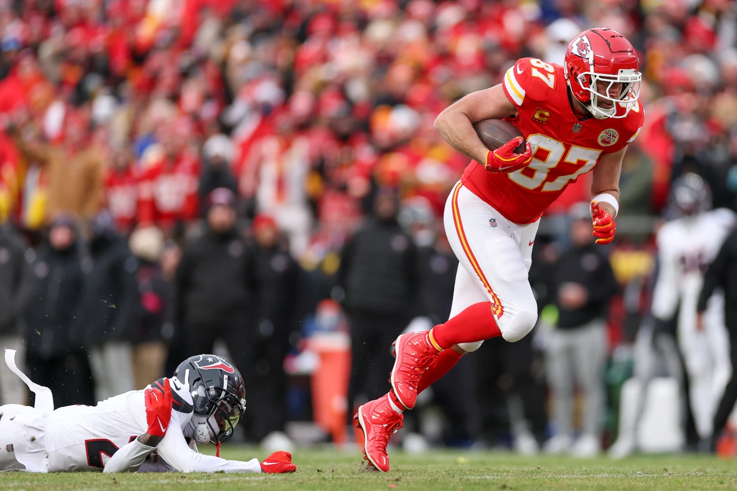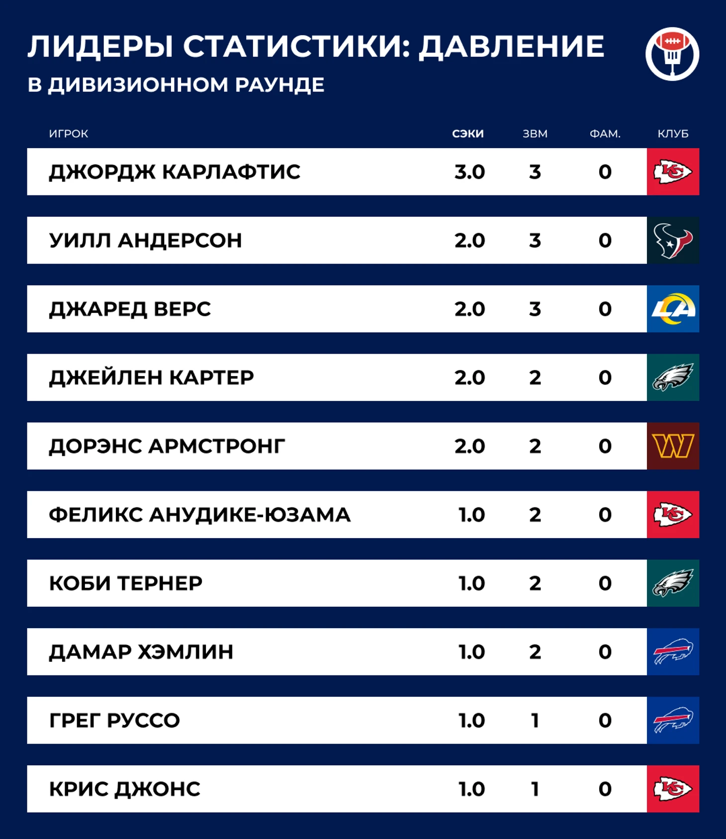 У «Хьюстона» был небольшой шанс оторваться по счёту в первой половине, пока «Чифс» дремали после двухнедельного отдыха, но затем сказалась разница в линиях. До Махоумса было не так просто добираться, как до Джастина Херберта, да и не рисковал он с бросками. И, напротив, Джордж Карлафтис с Крисом Джонсом навязывали Си Джею Страуду свою грубую дружбу. Опять самый сильный специалист на обеих бровках — Стив Спагноло. Нет, серьёзно, вы бы хоть пиксели в другом порядке расставили.