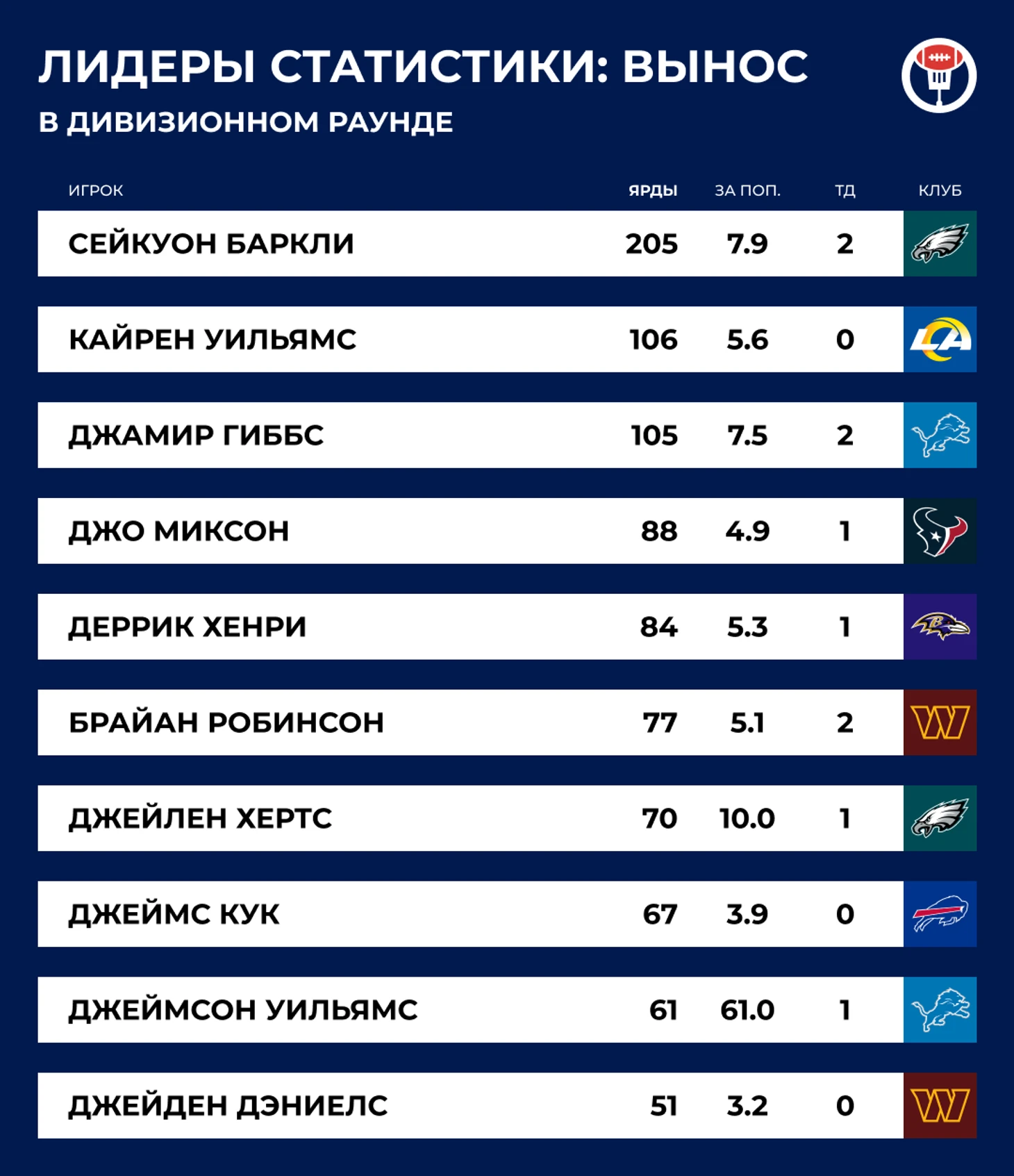Это вообще главный итог всего дивизионного раунда. Много ярдов набирают те, кто мяч в руках держать не умеет.