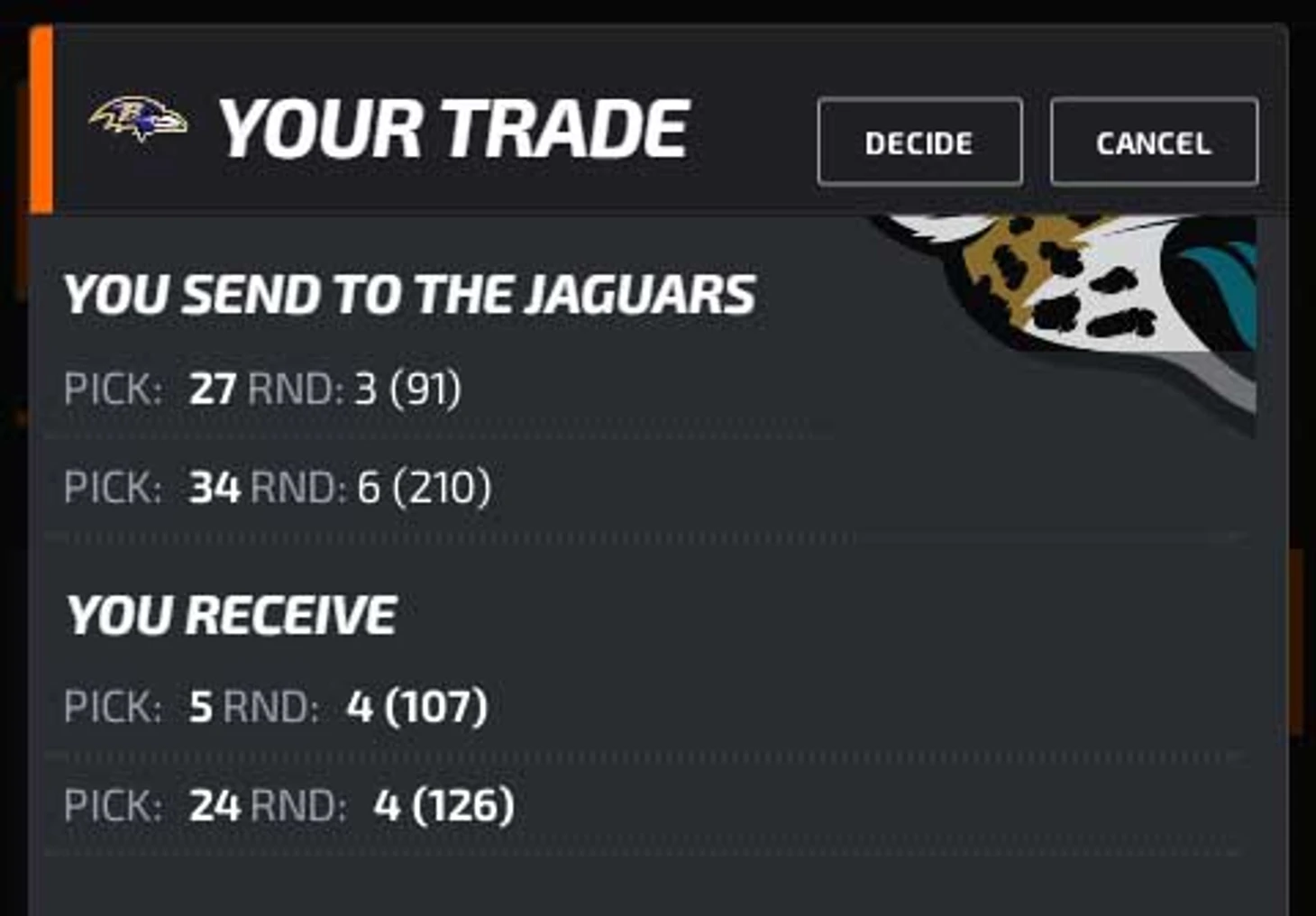 Обмен с Джексонвиллем: пики 91 и 210 на пики 107-й и 126-й