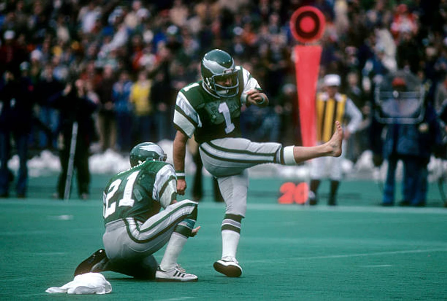 1980-е годы были очень странным временем. В НФЛ эта странность проявлялась в огромном количестве причуд, включая безумные прически, неироничные усы, рождественские свитера, которые тренеры надевали в день игр, и неизменной любовь к ярким (но по большей части бесполезным) шейным платкам. Присутствие босоногих кикеров — мужчин, добровольно снимающих обувь и бьющих по чему угодно, от грязи до замерзшего газона или льда, потому что они видели в этом выгоду — было лишь частью очень странного шоу.