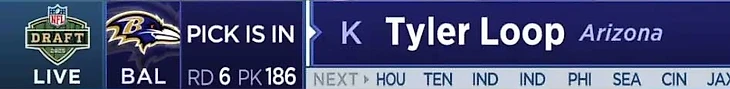 7. Пик № 186. К Тайлер Луп. Как говорилось в фильме Wabank-2: «извините, панове, тут так написано». Случилось страшное: под 182 пиком Пэтриотс выбрали кикера Боррегалеса. Все пропало! Гипс снимают! Луп в опасности. И, несмотря на то, что наша дырища в D-line не закрыта, мы выбираем этого шикарного парня.