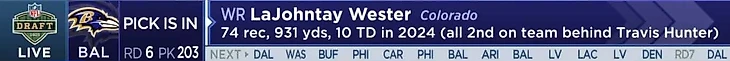 8. Пик № 203. WR ЛаДжонтей Вестер. Мелкий пиZдюк, набивший рекорд в университете Флорида-Атлантик, а в последний год игравший с Великим Шедевром. Результаты последних лет неплохие: +/-1000 ярдов, плюс возвраты. Собственно, его и взяли на возвраты пантов. Как будто ретернеры стоят больше ляма за сезон. Впрочем, я уже сейчас думал бы о продолжении линии Флауэрса, денег на которого через 2 года вряд ли хватит.