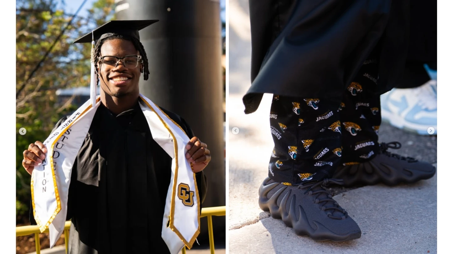 На прошлой неделе у Хантера был выпускной в колледже Колорадо. На церемонию футболист надел не только полагающуюся по случаю мантию, но и пижамные штаны с логотипами «Джегуарс».
