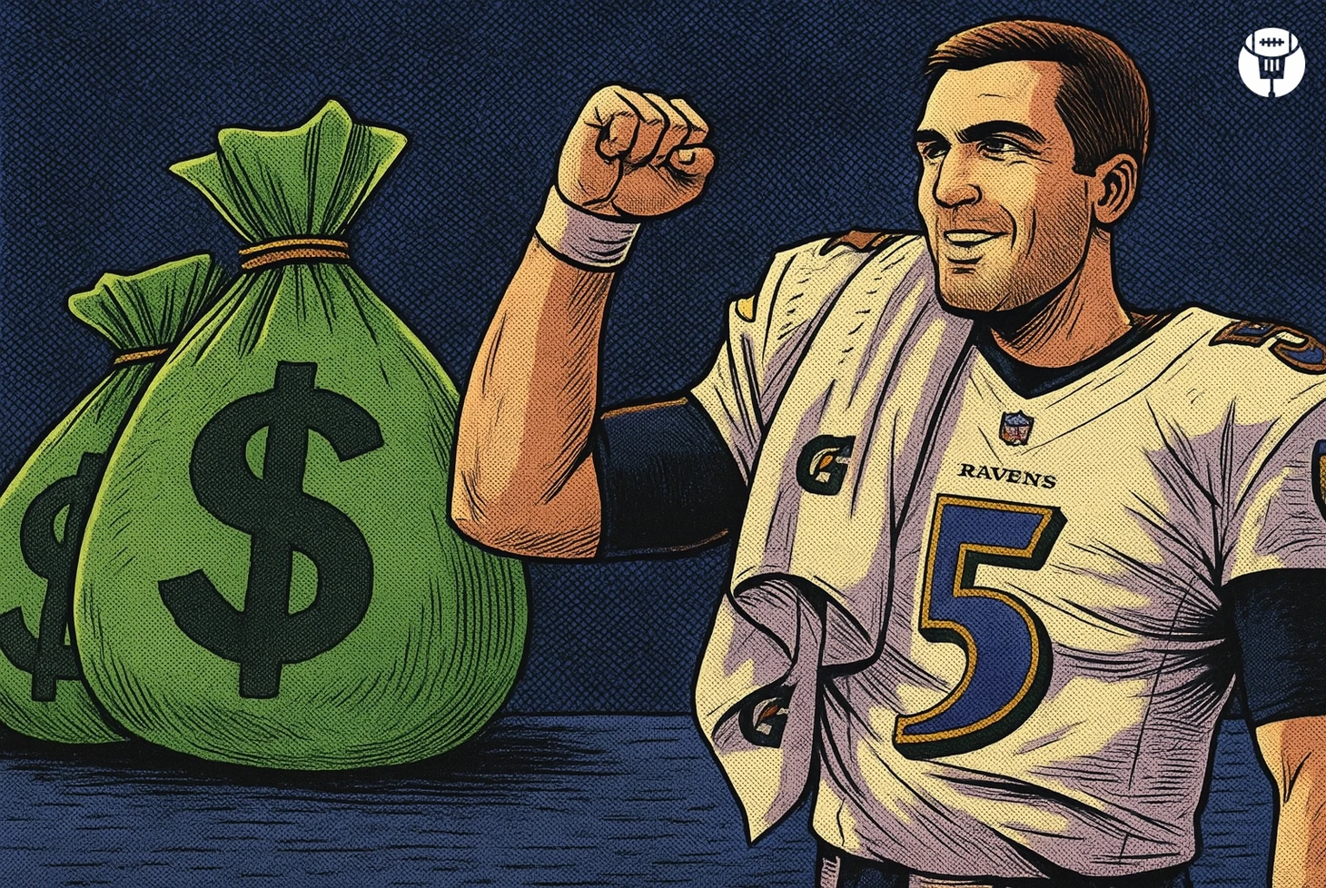 Помните, я в начале сказал про два контракта? Дело в том, что из-за сложностей с платёжной ведомостью «Рейвенс» обязаны были составить контракт Флакко таким образом, что ему практически гарантировано было продление через три сезона: под потолком зарплат соглашение после $14,6 млн на третий год занимало почти $29 млн на четвёртый, что по тем временам было неподъёмным грузом.