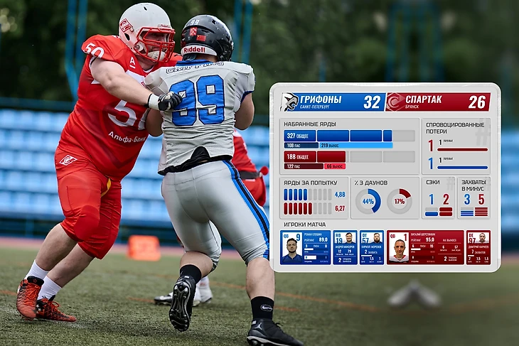 Защита «Грифонов» вынудила квотербека брянского «Спартака» чаще набирать ярды по земле — ввиду того, что Виталий Шерстянкин чаще отмечался именно как пасовый квотербэк с отличным корпусом ресиверов, такие коррективы заметно сказались на результате — с перекрытым воздухом показать все свои сильные стороны Виталию оказалось заметно тяжелее, чем в предыдущем матче. При этом отдельно стоит заметить, что у «Грифонов» защитники сыграли как единое целое и вполне себе равномерно — никто из игроков по статистике сильно не выделился, но статистика Брянска в нападении говорит нам о том, что защита «Грифонов» со своей задачей справилась на отлично.