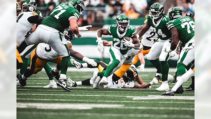 Бегущий «Нью-Йорка» Брис Холл отлично использовал малейшую возможность для набора ярдов, желая изменить закрепившийся за «Джетс» статус одного из худших выносных нападений лиги прошлого года.