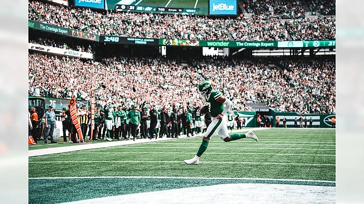 Джастин Филдс в следующем драйве «Нью-Йорка» доказал, что по-прежнему является не только выносной опцией, но и хорошо пасующим квотербеком, разрядив пушку на 34 ярда на ресивера Гарретта Уилсона. Тачдаун. Последующая попытка двухочковой реализации (зачем-то) неудачна. 7-9 в пользу «Реактивных».