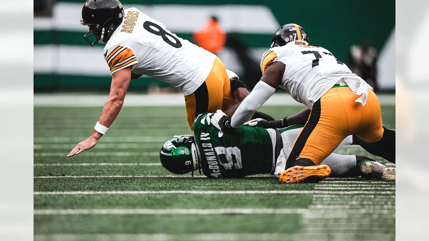 Примечательны является тот факт, что клубы хоть и не напрямую, но обменялись стартовыми квотербеками, начинавших прошлый сезон в основных составах сегодняшних соперников. Заслуженный ветеран Аарон Роджерс, жаждущий реабилитации после двух неудачных лет в стане «Джетс» этим летом присоединился к «Питтсбургу», желая завершить свою славную карьеру на мажорной ноте. Джастин Филдс в прошлом сезоне первые 6 матчей провел в роли стартового распасовщика «Стилерз», но затем потерял доверие тренерского штаба и в дальнейшем появлялся на поле лишь изредка. В поисках игровой практики молодой квотербек перебрался в Нью-Йорк, где пустовало место стартера как раз после ухода Роджерса.