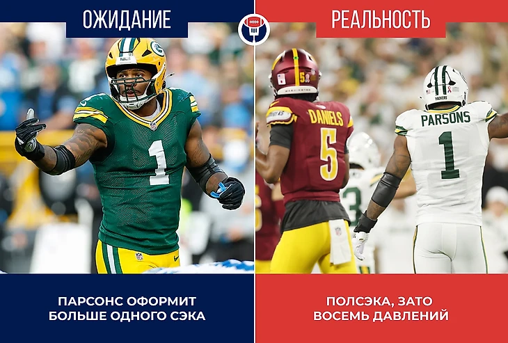 Защита «Грин-Бэй» обозначила заявку на статус лучшей в НФК после того, как наглухо закрыла два самых опасных нападения в конференции с прошлого сезона — «Детройт» и «Вашингтон», набиравшие по 28 очков в среднем за матч в сезоне–2024, сейчас набрали только 31 очко на двоих. И это с учётом мусорного времени. Если считать первые три четверти, когда исход матча ещё не был предрешён, то получится лишь девять очков.