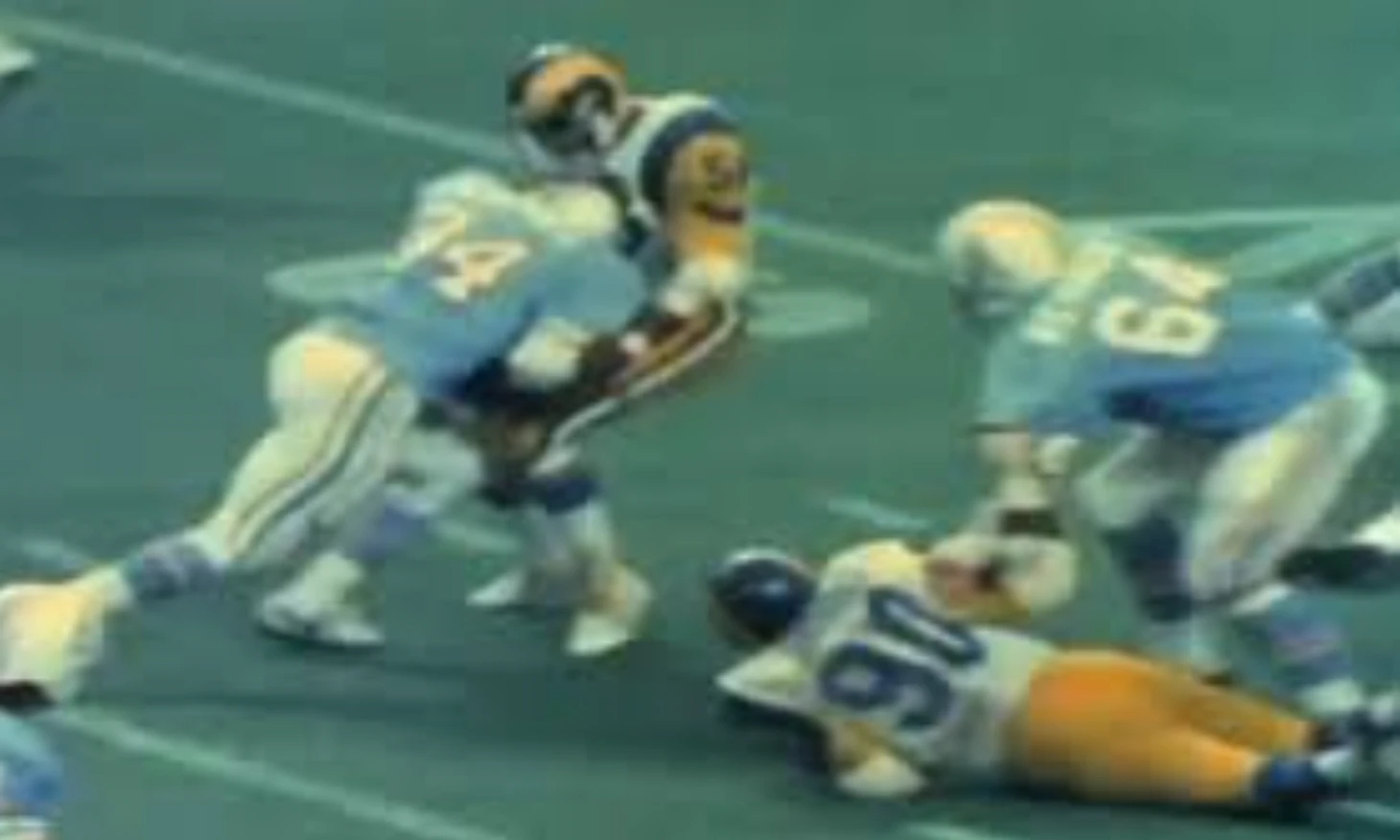Кэмпбелл опустил шлем и ударил в грудь Робертсона, отбросив того на три ярда назад. Это был, пожалуй, самый жестокий удар, который раннинбек когда-либо наносил защитнику. Затем Кэмпбелл сделал катбэк в середину поля, где сильный сэйфти Дэйв Элмендорф попытался захватить его, но в итоге лишь сорвал с него майку. В конце концов, трое игроков «Рэмс» повалили его на землю.