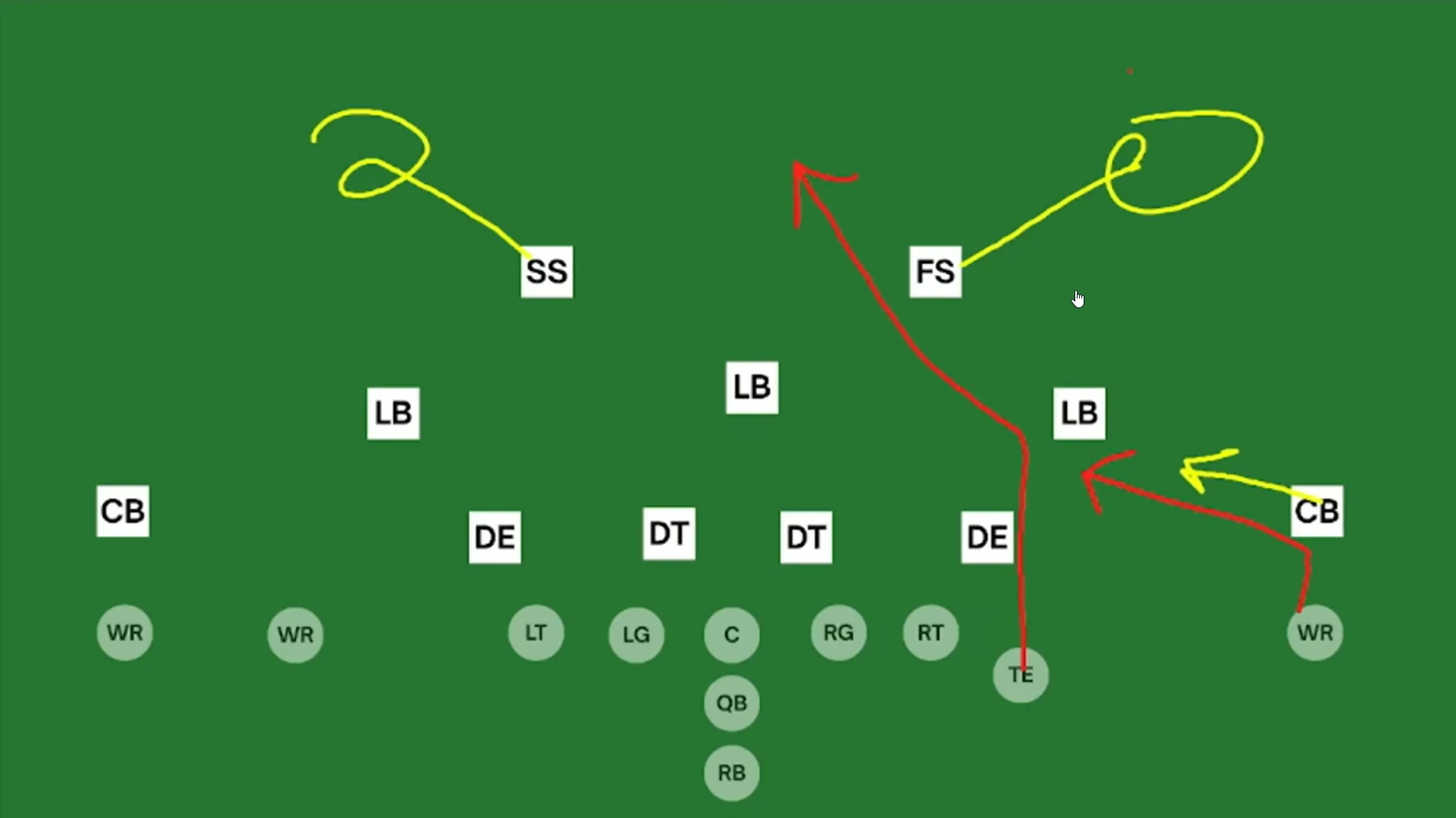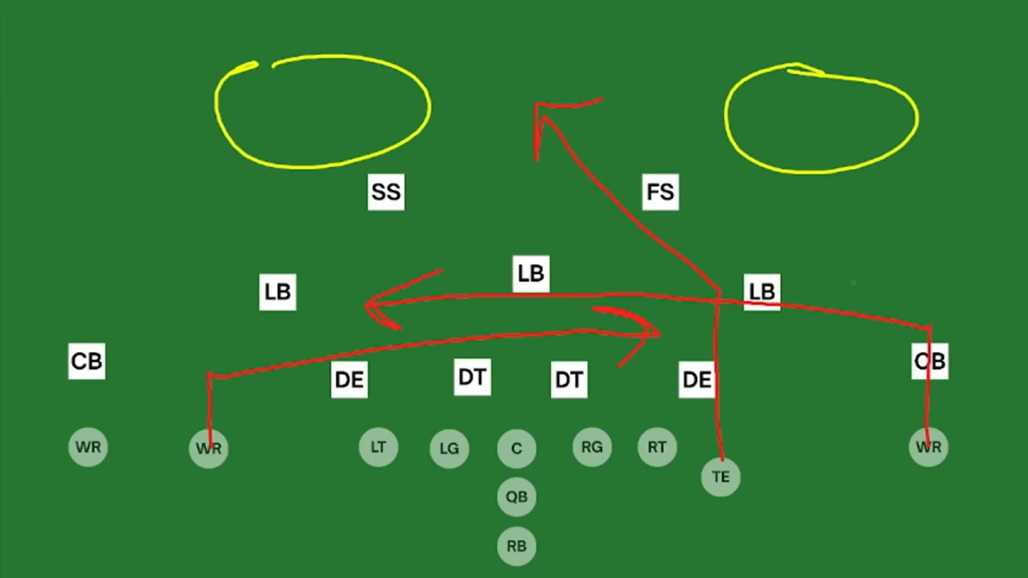 Защита инвертирует-обменивает зону ответственности: Сейфти продолжает движение вниз, чтобы оберегать flat зону корнербека, в то время как корнербек поднимается выше, чтобы контролировать зону в глубине поля.