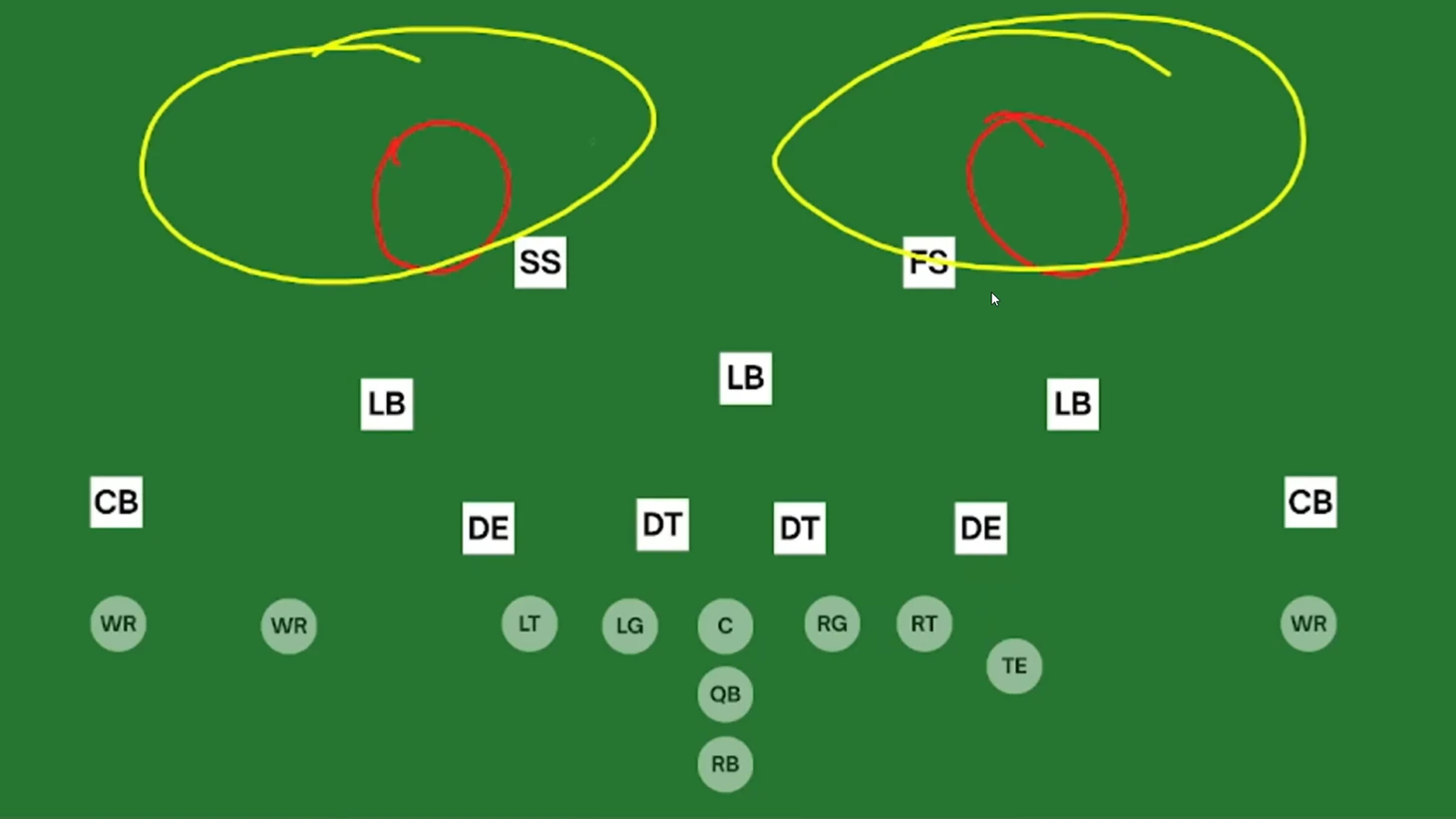 В Cover 2 Zone 2 сэйфти делят глубокую зону пополам, и каждый их них отвечает за свою сторону, примерно на 15 ярдов в глубину. А пять других защитников, не играющих линейных, покрывают короткие средние и ближние зоны.