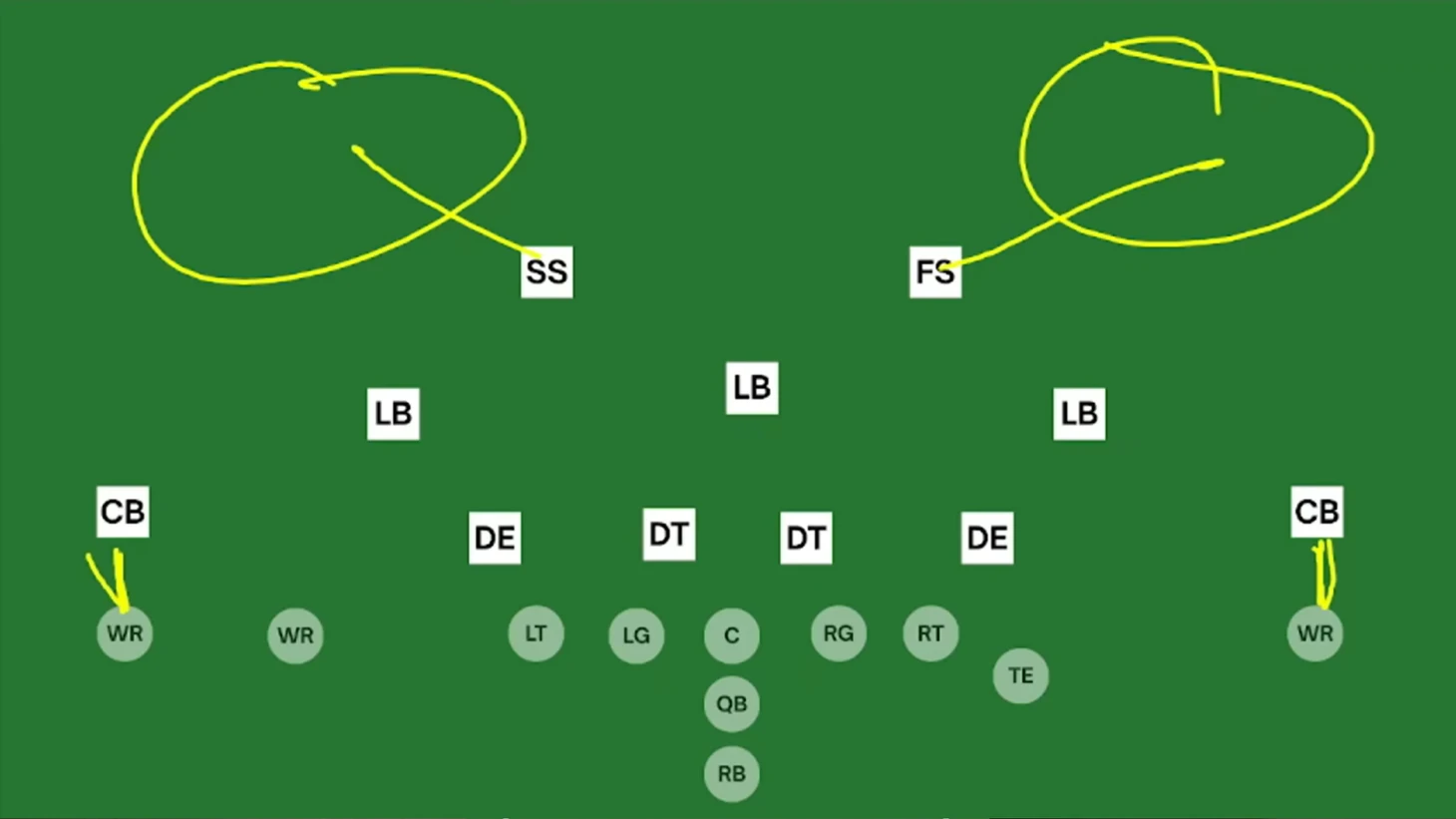 Cover 2 Buzz - это ловушка, обман. Хотя оно выглядит как cover 3 (прим. пер: о прикрытиях cover 3 будет следующая часть) с сейфти, перемещающимся вниз на пре-снэпе, на самом деле это cover 2.