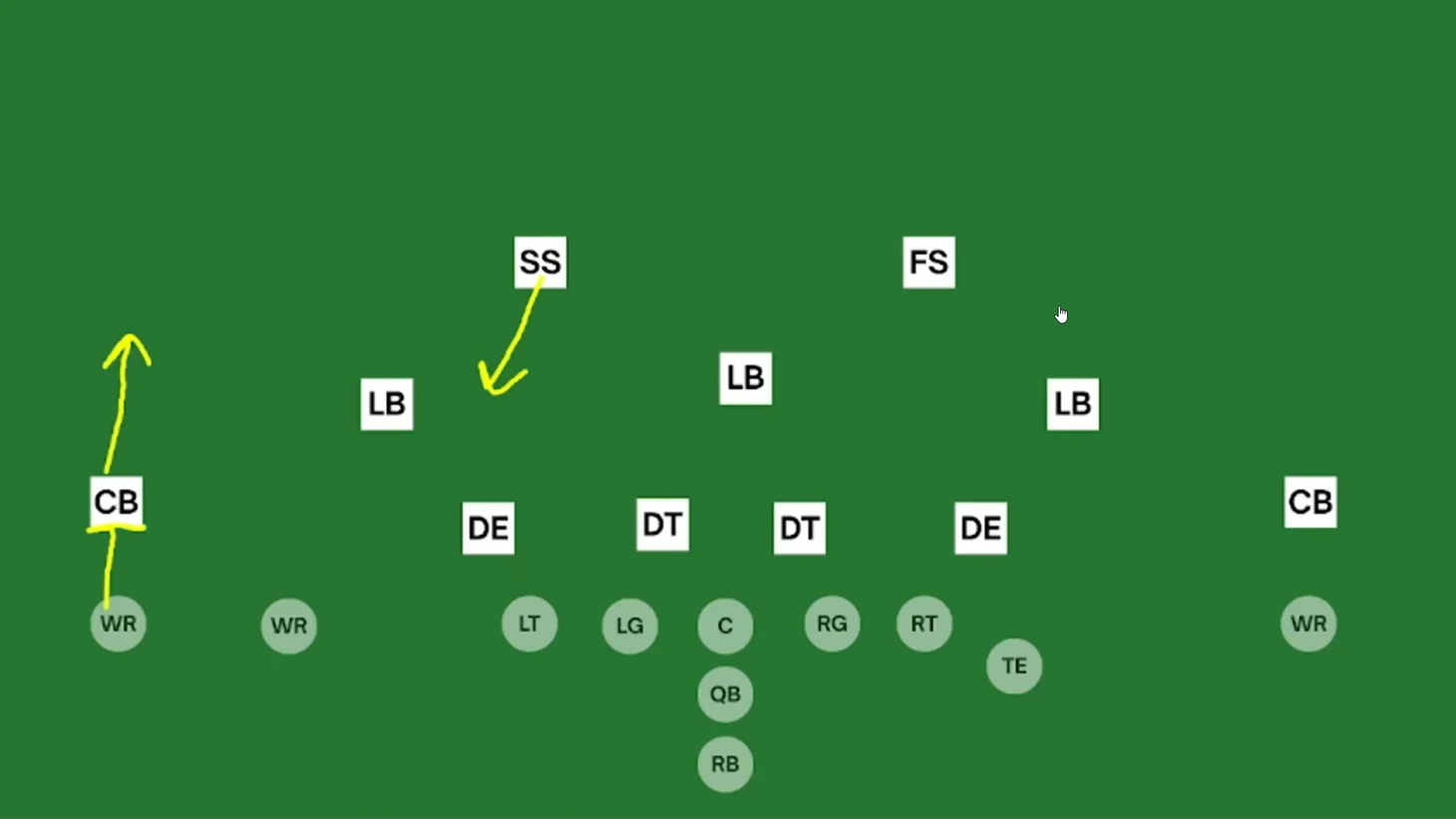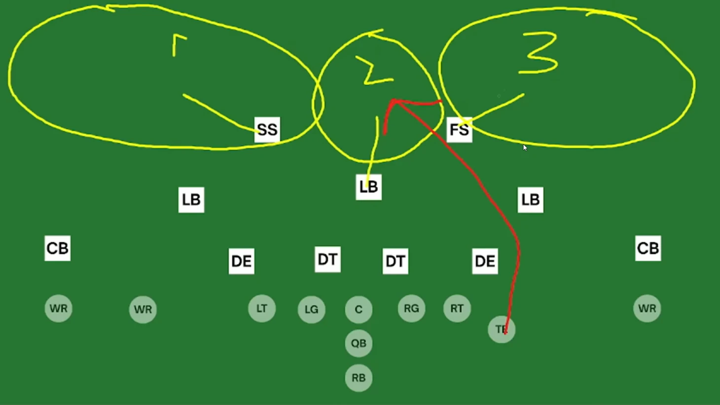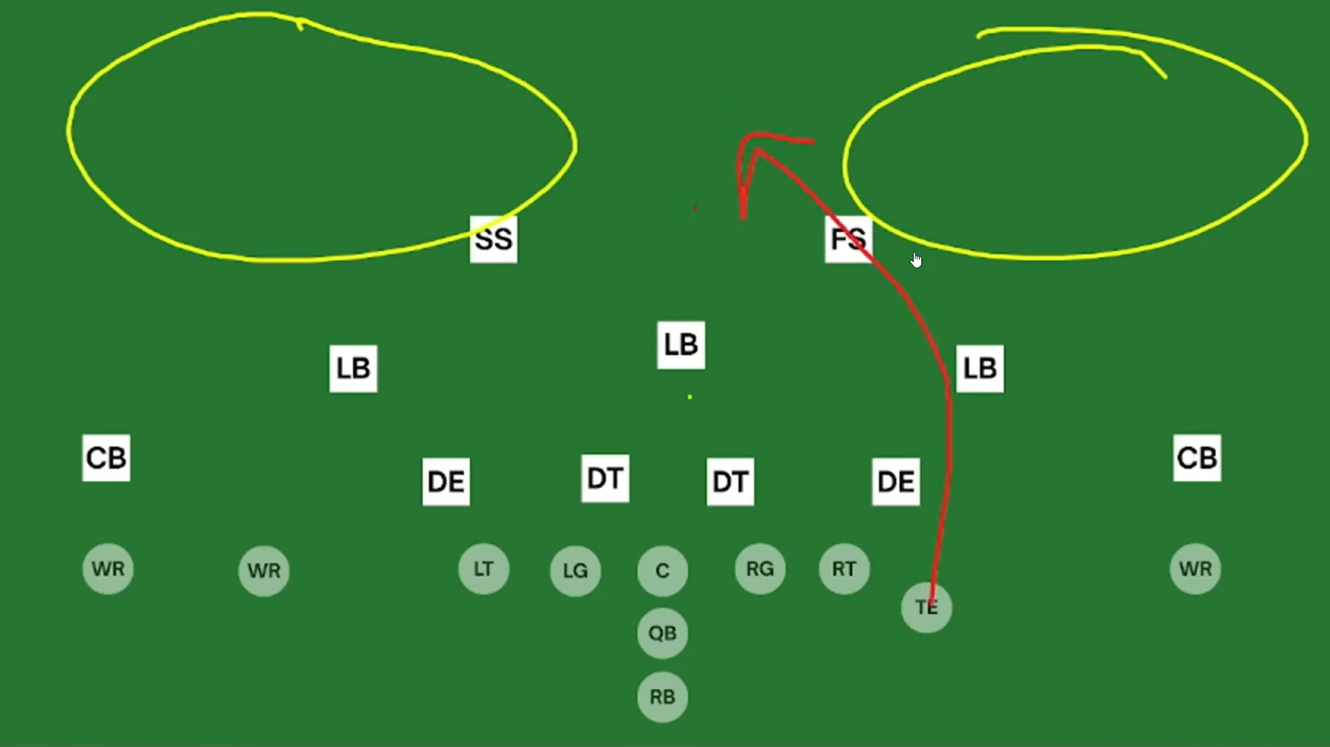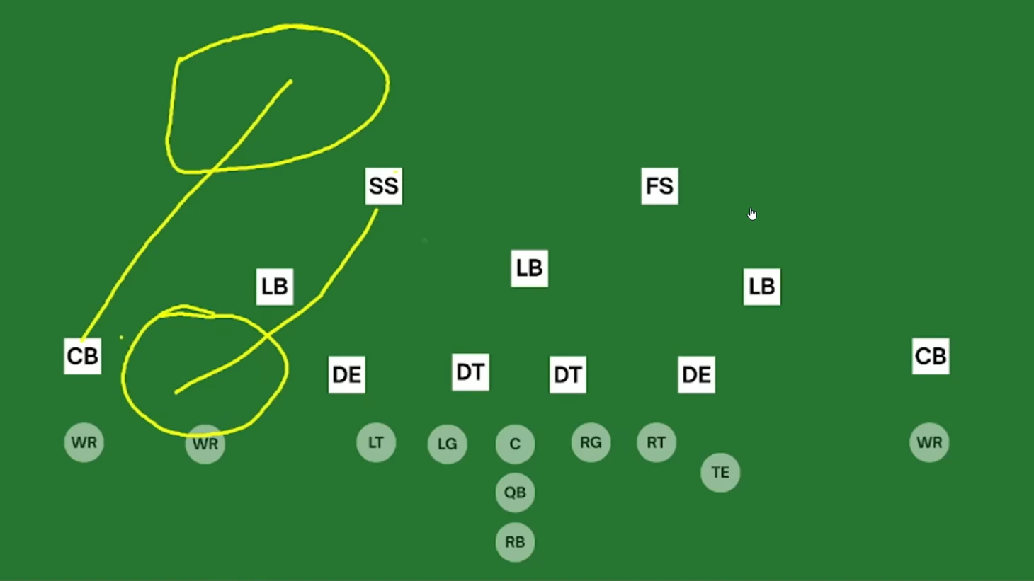 Этот поднимающийся лайнбекер закрывает уязвимость в середине глубины обычного cover 2, перекрывая маршруты, которые обычно находят пространство и форточку в cover 2.