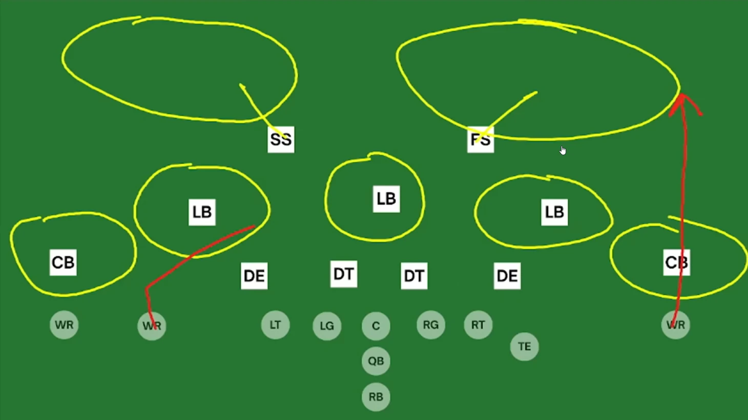 Такое прикрытие часто играется на 2 даунах, а также против команд, пасующих очень часто. Вы можете распознать Cover 2 zone по двум сейфти, играющим в глубине, а также по двум корнербекам, расположенным к принимающим близко, но не вплотную