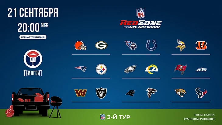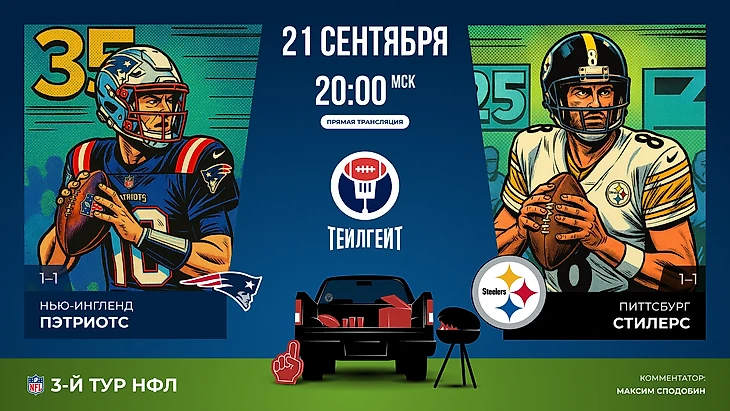 Две волны NFL Red Zone, а также вынесенный матч: «Питтсбург» против «Нью-Ингленда». Дежурно напоминаю, что подписка на «Тейлгейт» в любой соцсети или мессенджере, которым вы пользуетесь, дает вам возможность не пропустить ничего из мира американского футбола.