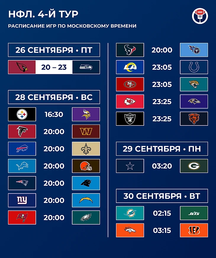 Рациональный аргумент здесь может быть только один — дебют Джексона Дарта. К нему сложно подготовиться — нет актуальных пленок игр для защиты. Дарт оставил очень хорошее впечатление по предсезонке и способен натворить немало бед своими ногами. Все-таки две из трех игр «Гиганты» проиграли из-за полной инертности нападения. Сейчас теоретически есть апгрейд на позиции квотербека, раннинбек Кэм Скаттебу разыгрался, вернулся в состав левый тэкл Эндрю Томас — поводы для оптимизма есть. Кстати, защита «Чарджерс» лучше всех в лиге прикрывает глубину поля от пасовых передач, то есть Расселл Уилсон в любом случае был бы лишен своего главного (единственного?) козыря.
