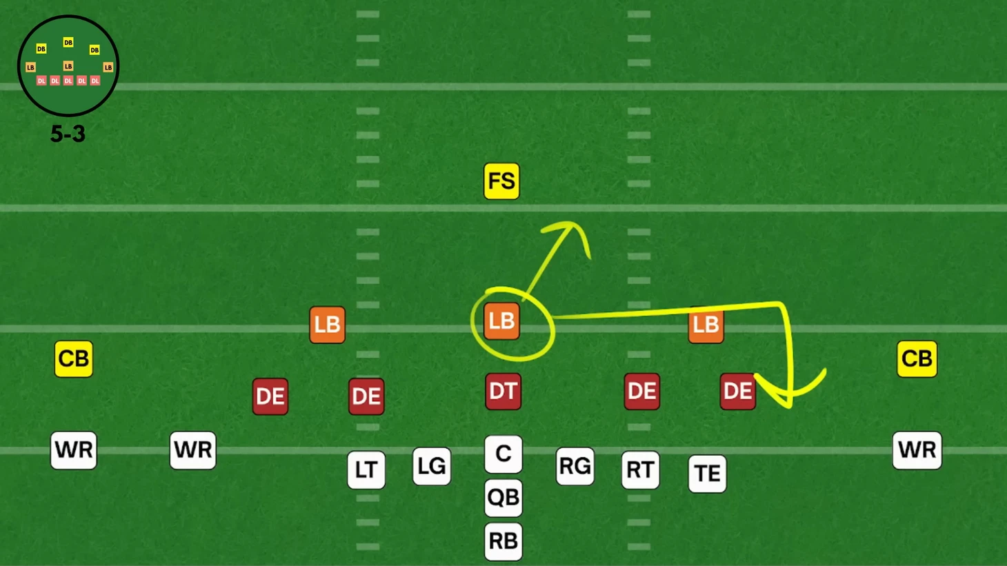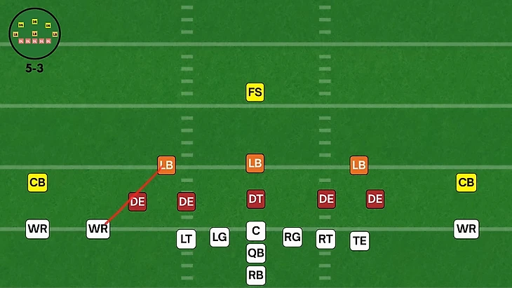 В 5-3 формации на поле располагаются пять линейных, три лайнбекера и три ди-бека. На одного ди-лайнера меньше, чем в формации 6-2, но на одного лайнбекера больше.