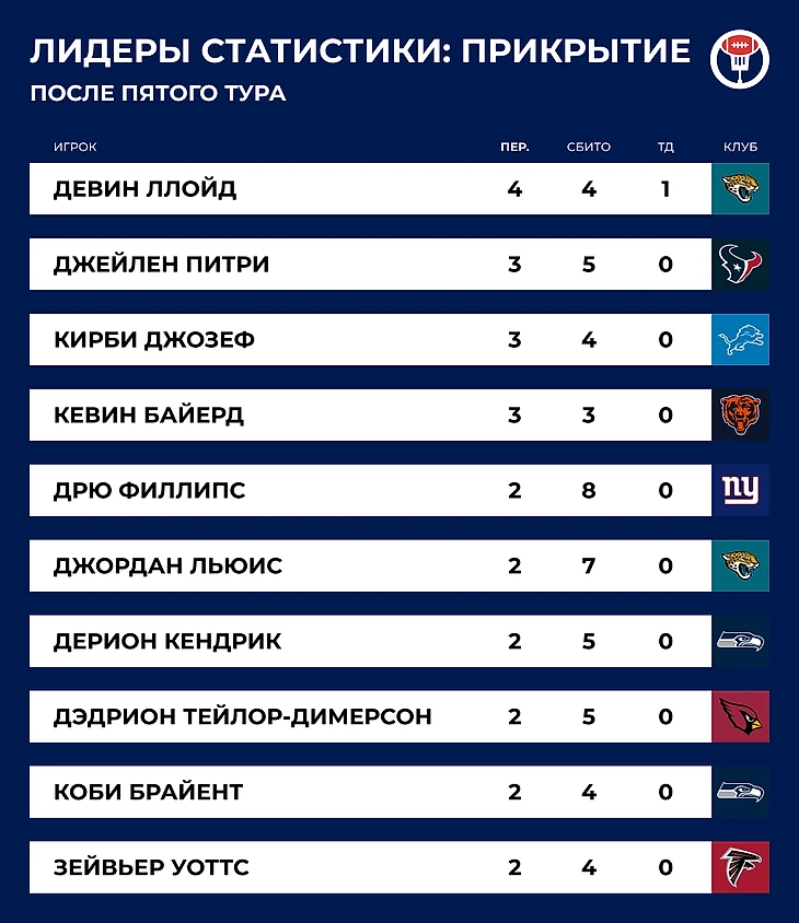 В пятом туре синхронно проиграли «Иглс» и «Биллс» — и команд с нулем в графе поражений не осталось. С 2014 года это самое быстрое расставание с надеждами на идеальный сезон.