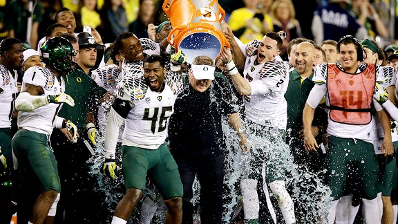 Вообще я рад двум победам в боулах: Орегона и, как ни странно, Стэнфорда. Фиеста Боул стал в исполнении Дакс именно таким матчем, которых я активно избегаю. У Канзаса просто не было шансов, они проигрывали в защите, в нападении и в спецкомандах, даже основная надежда команды - претендент на Хайсмана Коллин Кляйн не сильно помог команде, всего 151 ярд паса против 143 ярда Кеньона Барнера на выносе. Совсем не впечатляет, как и два перехвата квотербека Уайлдкэтс, против двух ТД пасов у Мариоты. Стэнфорд с Висконсином выдали не в пример более интересный футбол, но Бэджерс снова проиграли. Это их третье поражение подряд в Роуз Боуле стало самым справедливым, пусть те же Хаски и не особо были готовы к противнику уровня BCS боулов, но они завоевали свое право играть в таком матче сами, а Висконсин закончил третьим в своей конференции с пятью(!) поражениями (4 из них в конференции), а в Боул попали благодаря дисквалификации Огайо (которые вообще закончили 12-0) и Пенн стейт. Не в коем случае не оправдываю наказанные команды, но согласитесь, что Бэджерс попали в Роуз Боул совсем не по спортивному принципу.