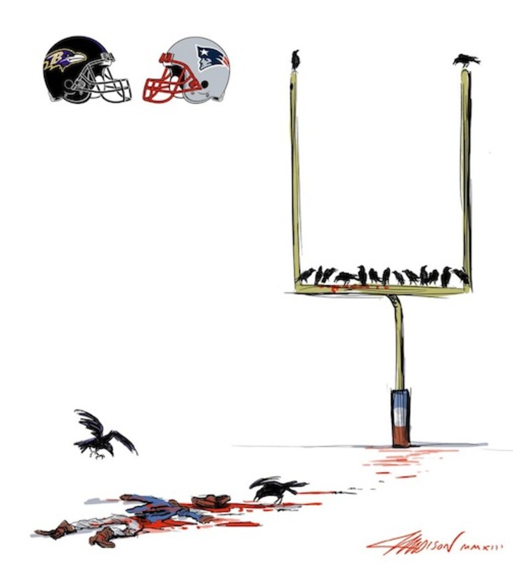 Просто триллер между "Патриотами" и "Воронами", закончившийся победой первых 31-30. Хотя я бы на месте ребят из Pixar сделал карикатуру на финал конференции года 2011. Вот это было бы сильно.