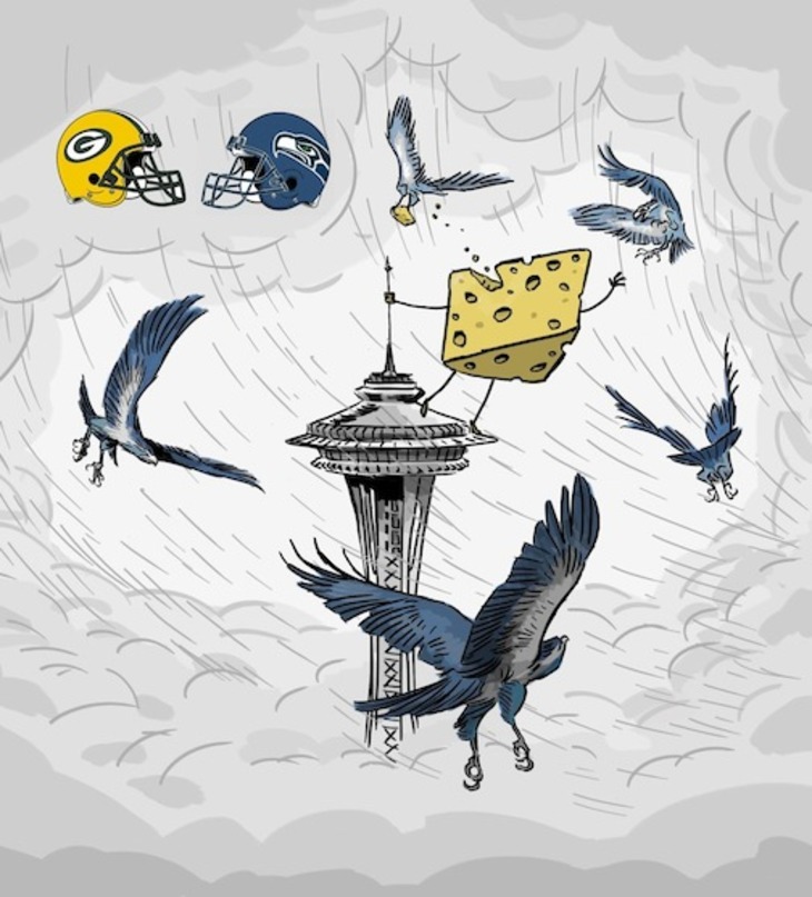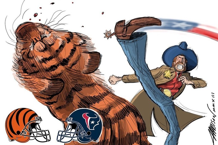 В яркой атакующей игре хозяева поля все же смогли вырвать победу у гостей из Висконсина. Предполагаю, что на карикатуре изображен Каперник, чья игра в тот вечер стала настоящим откровением.
