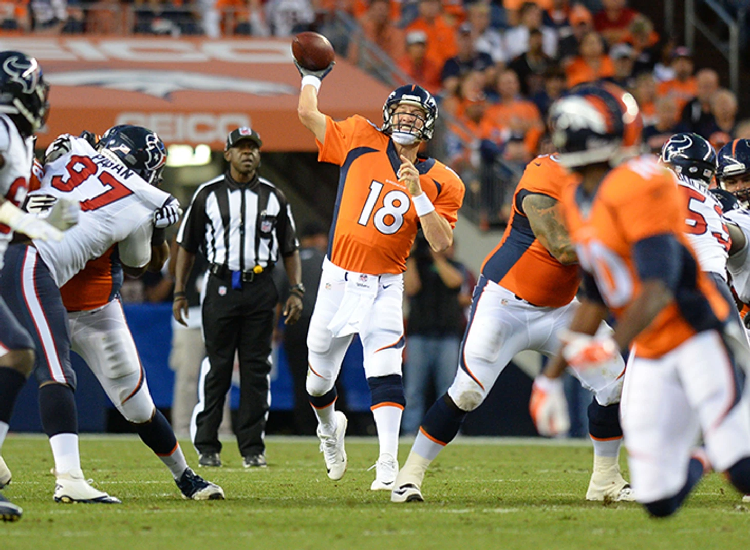 В прошлом году дошедший до Супербоула «Денвер» оказался раздавлен лучшей защитой лиги. Но был ли виноват в этом исключительно неморозоустойчивый Пейтон Мэннинг? Защита «Бронкос» подвела в самый ответственный момент, поэтому генеральный менеджер клуба Джон Элвей знатно потрудился в межсезонье, подписав свободных агентов Демаркуса Уэйра, Тиджея Уорда и Акиба Талиба. В «Денвере» продолжается работа в режиме «все и сразу», поскольку часики Пейтона тикают – ему уже 38 лет, и нынешняя попытка может стать последней. В руках «Шерифа» сосредоточено самое могущественное пасовое нападение в чемпионате. Хватит ли его на плей-офф?