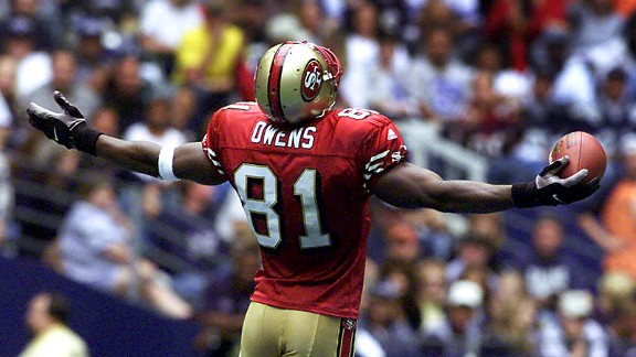 Тренировка открытая, я выхожу на поле со шлемом в руке, и трибуны встают. Какое приветствие! Я смотрю налево: чуть сзади идут Террел Оуэнс и наш стартовый квотербек, Джефф Гарсиа. Они-то, наверно, думают, что трибуны приветствуют их.