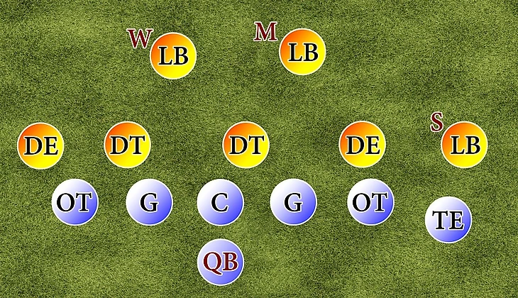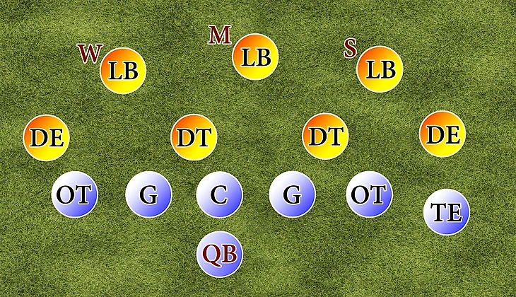 Собственно, классическая “четверо линейных - трое лайнбекеров” защита.