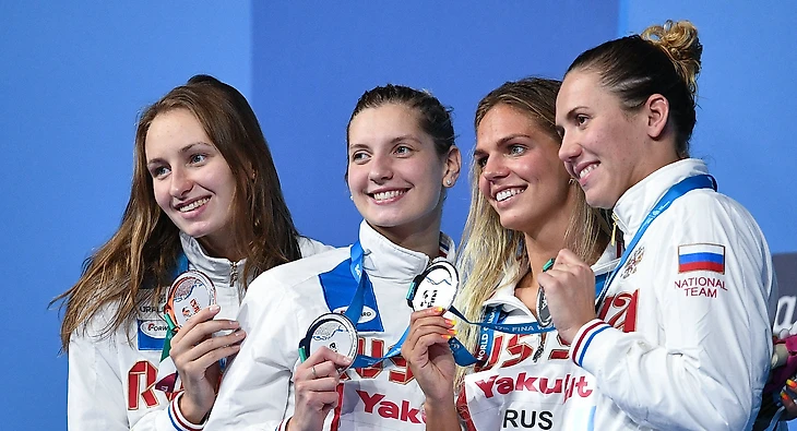 Женская сборная России по плаванию взяла серебро чемпионата мира в Будапеште в комбинированной эстафете.