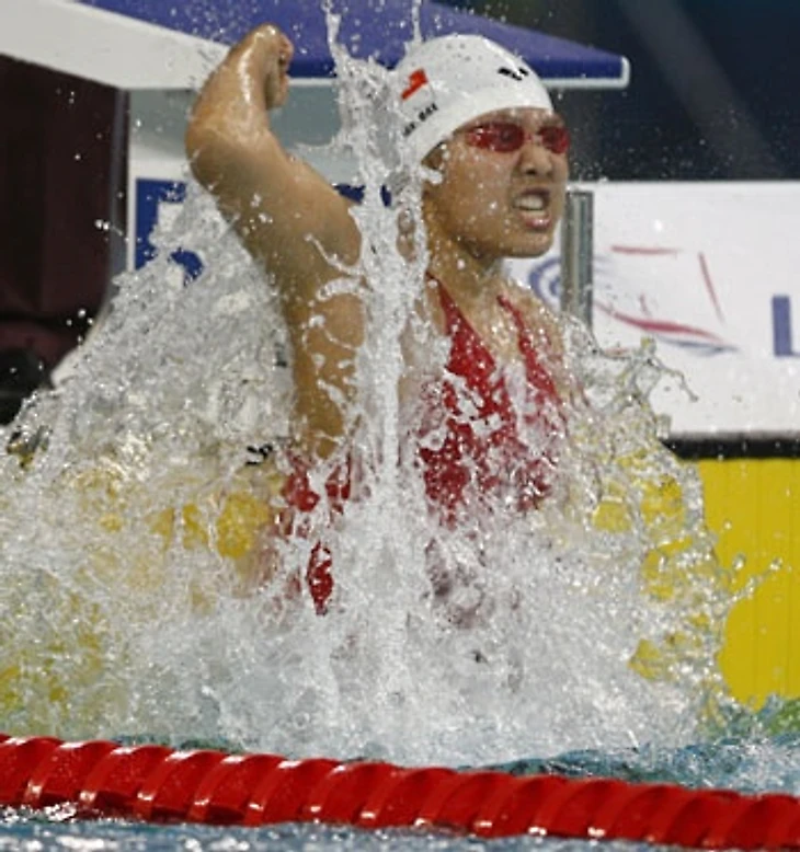 Китайские мужчины по ходу плавательного турнира были в тени японцев, взяв лишь 3 золотые медали. Наиболее титулованным среди китайских чемпионов был ставший в том же году чемпионом мира на короткой воде Ву Пен, победивший в Дохе на дистанции 200 м баттерфляем с рекордом Игр. Основную силу Китая составляла женская сборная, потрудившаяся на славу! Трехкратной чемпионкой Азиады стала Сю Янвей. На ее счету победа на 50 м вольным стилем (с рекордом Азиад), на 100 м вольным стилем и в эстафете 4*100 м вольным стилем. Еще больший успех был у Пан Цзяин - 4 золота! Этой талантливой китайской пловчихе удалось стать лучшей на 200 м вольным стилем и в трех эстафетах. Два золота у Чжао Цзин: она выиграла с рекордом Игр 50 м на спине, а затем, плывя на первом этапе, стала лучшей в комплексной эстафете. Три золота у героини Универсиад тех лет Ци Сюи - на дистанциях брассом и комплексным плаванием, и все с рекордами! Чемпионка мира Янг Ю оба своих золота взяла в эстафетах вольным стилем, плавая на втором этапе.