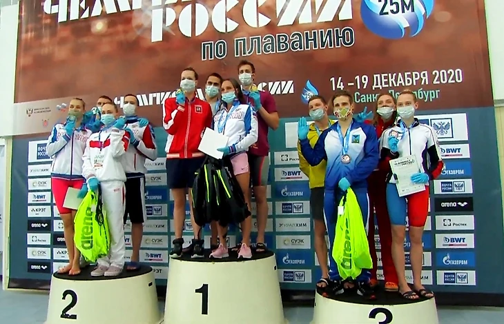 В интереснейшей смешанной комбинированной эстафете 4х50 метров москвичи выиграли с результатом 1.39,93. Чемпионский состав - Дарья Васькина (спина), Ника Годун (брасс), Андрей Жилкин (баттерфляй) и Владислав Гринёв (кроль). Догоняющий состав: на первых двух этапах девушки, а затем мужчины догоняют убегающий состав. Второе место заняли новосибирские пловцы - 1.42,15. Третье место у команды Белгородской области - 1.42,57.