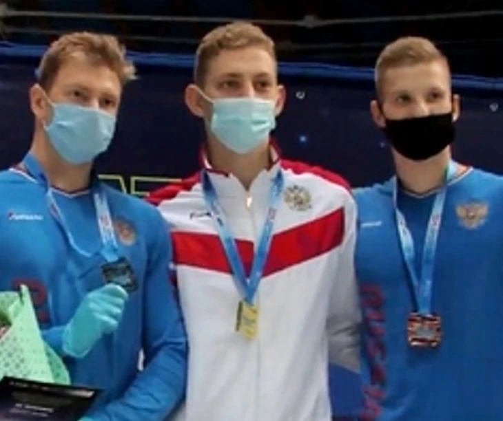 Климент Колесников Этот результат свидетельствует о хорошей готовности Климента к олимпийскому сезону. Ждём его выступление на сотках кролем и на спине. А Григорию Тарасевичу желаем успеха на двухсотке на спине, где ему светит вторая путевка после Евгения Рылова. Программу первого дня венчала мужская эстафета 4х100 метров кролем. На первом этапе выиграл Евгений Рылов (96 гр) -48,25, выступающий за Московскую область. Александр Щёголев (02 гр) из команды Санкт-Петербург уступил ему 0,03. На втором этапе его земляк Андрей Минаков (02 гр) проплыл за 47,94, уступив только Владиславу Гринёву - 47,60. Климент Колесников проплыл свой этап за 48,71. Получается, что Владислав Гринёв всё-таки сейчас выглядит лучше всех на сотке кролем. Хотя на первых этапах Рылов и Щёголев стартовали по сигналу стартера, а на последующих этапах ребята прыгали в воду после касания бортика участников команды. Победили москвичи - 3.14,62. Состав команды победителей - Михаил Довгалюк, Владислав Гринёв, Владимир Морозов и Климент Колесников. Серебро у питерской команды - 3.15,19: Александр Щёголев, Андрей Минаков, Василий Кукушкин и Роман Шевляков. Бронза у команды Новосибирской области (Даниил Марков, Арсений Десятов, Александр Шумилов и Максим Аблобацкий) - 3.19,83. Завтра ждём новых достижений в бассейне Казанского дворца. Владимир Черевичко