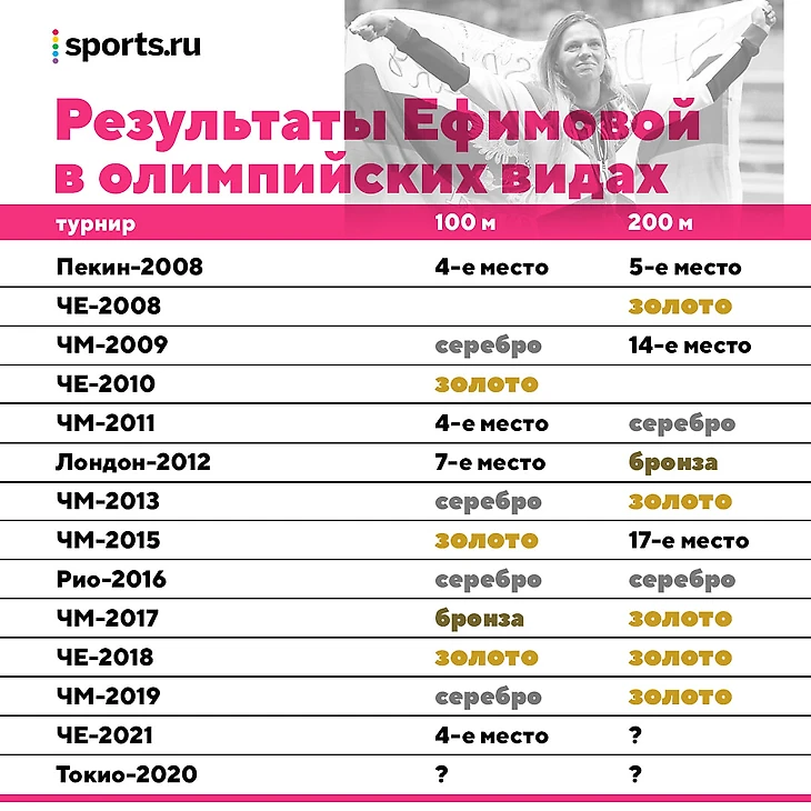 Ефимова в любом случае выступит на Олимпиаде – у нее есть как минимум 100 м, а еще ведь будут две комбинированные эстафеты (женская и смешанная), куда она тоже может попасть.