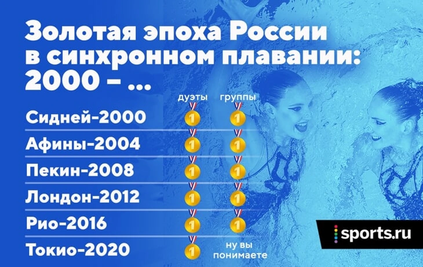 Только в конце 90-х Россия присвоила синхронное себе – переломным стал ЧМ-1998 в австралийском Перте. Там сборная России выиграла первое золото – дальше понеслись только победы.