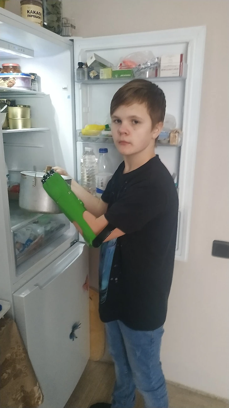 Через год после протезирования Кирилл совершенно забыл об ограничениях. Он с большим удовольствием пользуется своим ярко-зеленым другом. С легкостью завязывает шнурки, застегивает пуговицы на одежде, помогает маме с приготовлением ужина и уборкой по дому и занимается любимым спортом!