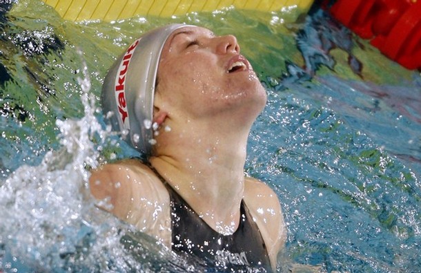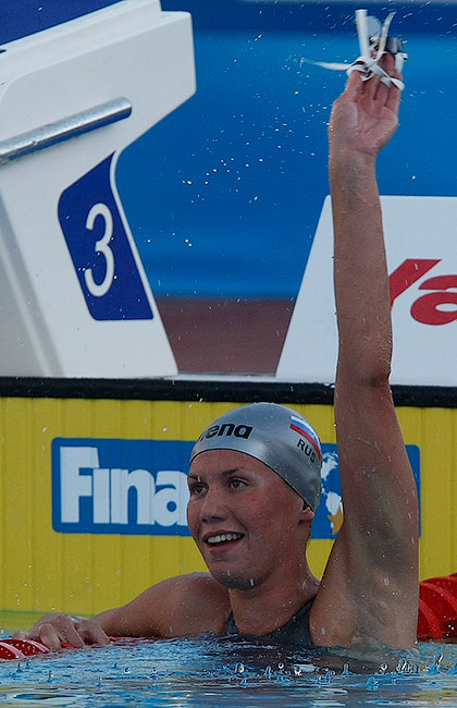 "Конечно, слежу, ведь боковым зрением видно всё. Но я считаю, всё равно нужно работать только с собой. Я даю себе установку, что нужно работать до последнего. Нельзя рассуждать так: я впереди - можно и передохнуть. Я не могу всех видеть, например, на чемпионате мира в Шанхае я видела только боковых девчонок рядом с собой, а китаянка выиграла одну сотую, плывя совсем далеко от меня. То есть получается, что работаешь сама с собой, соперничаешь со временем, понимаешь, что если ты покажешь достойное время, то, соответственно, займёшь высокое место."